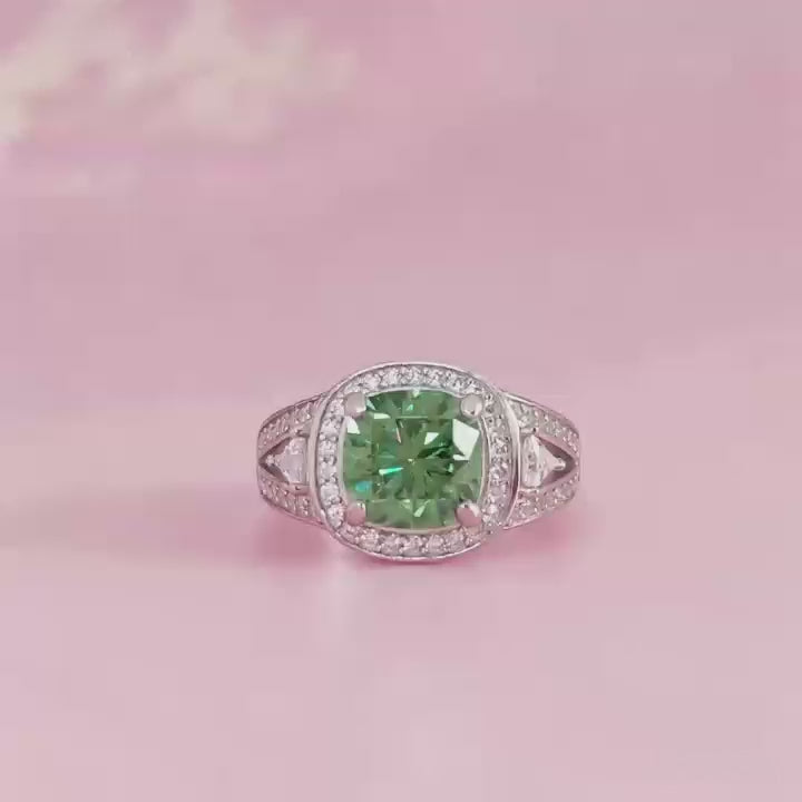Mystic Aurora: Moissanit-Aschering im Kissenschliff